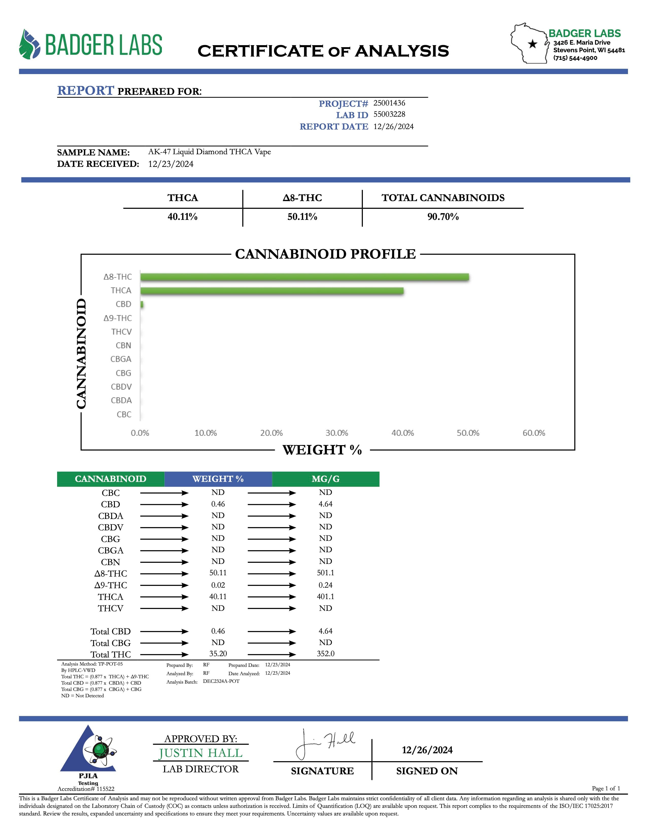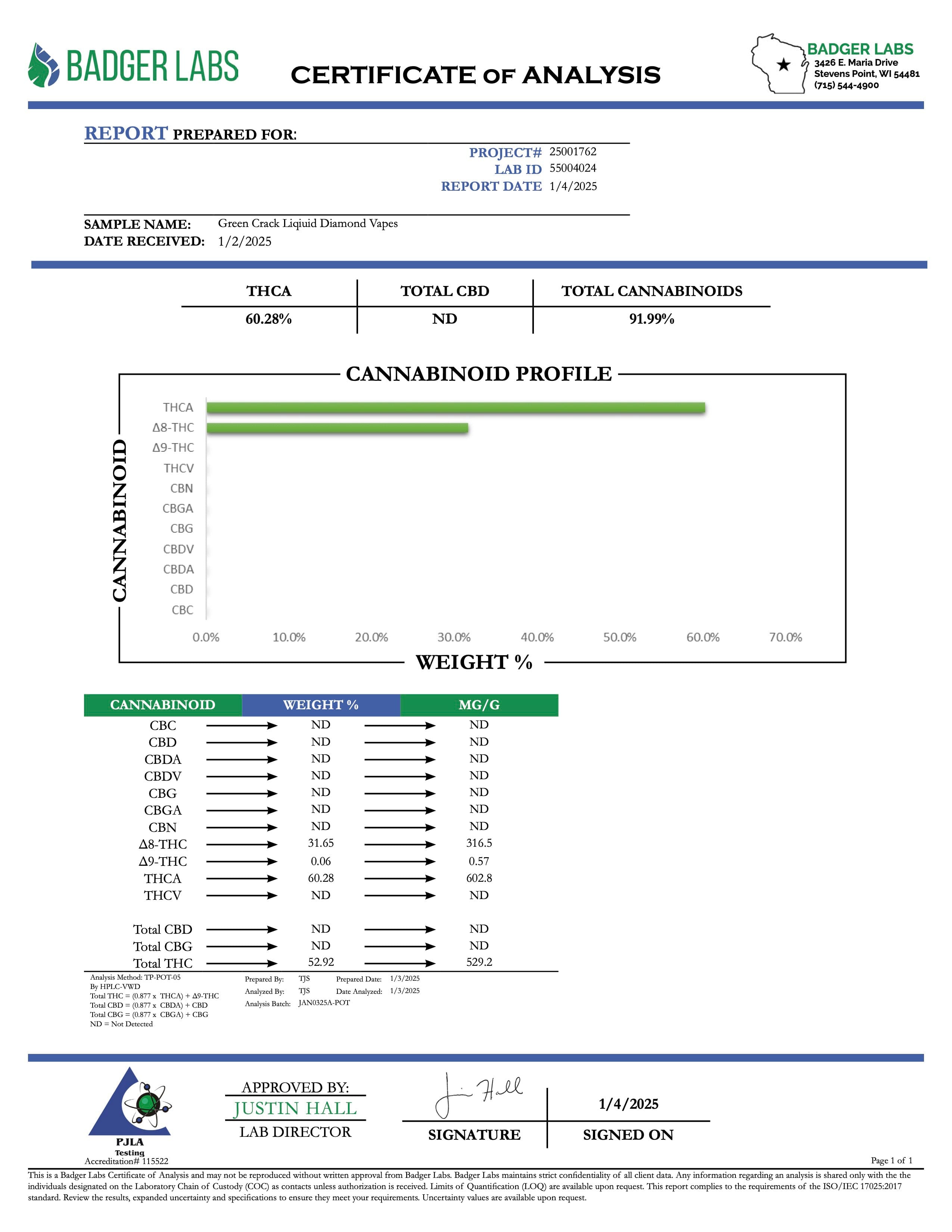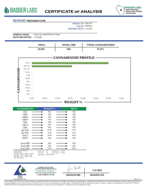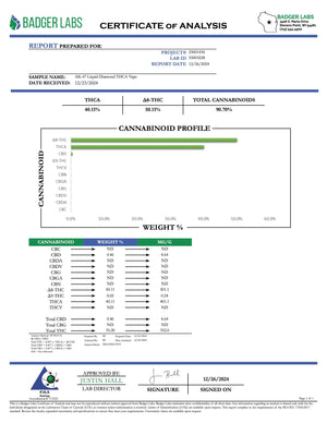 THCA is legal according to federal law and many state laws. THCA extract is 100% derived from legal hemp and does not contain more than 0.3% ∆9THC or any CBD. However, we do not guarantee that this product is legal in your area and it is up to you to follow your state/territory laws and regulations.