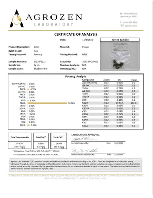 All BackWoodz premium CBD flower products go through 3rd party testing and organically grown without the use of pesticides. Blueberry Pie Indoor tests out with a 14.95 CBD% and under .3% Delta-9 THC. BackWoodz hemp flower is U.S Farm Bill compliant under the Agriculture Improvement Act (Sec. 10113).