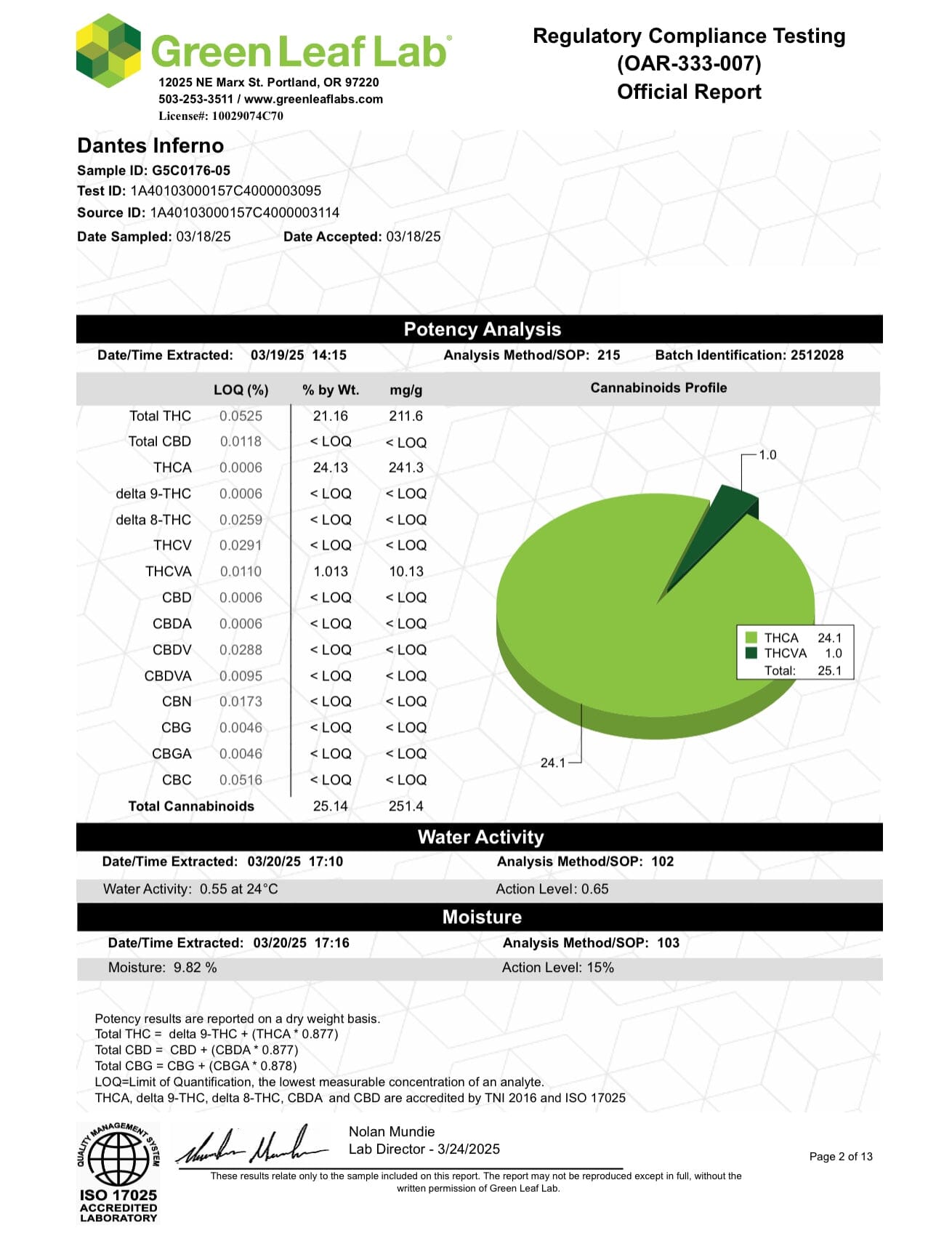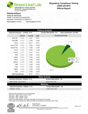 Limited Time! Indoor Dante's Inferno is a big bag-appeal exotic that pairs the popular OreoZ with Devil Driver. This bud has a nice flavor profile that is centered around vanilla, berries & cream and mixed fruits. This 70/30 indica dominant hybrid is best recommended for evening use. Dante's Inferno provides extreme cerebral effects with full body relaxation. THC-A is a natural cannabinoid found in hemp flower. No conversion or infusion method is used in this product.
