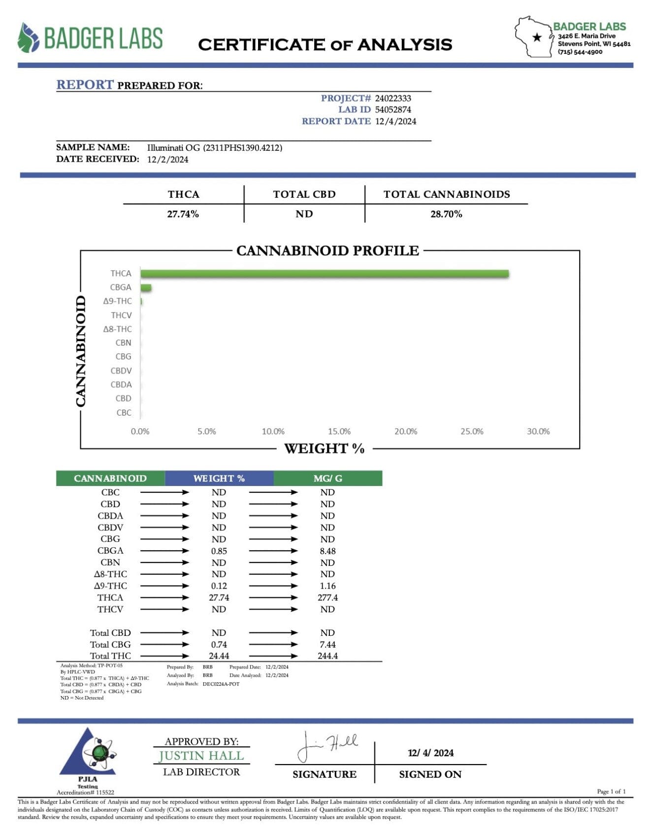 All BackWoodz premium hemp flower products go through 3rd party testing and organically grown without the use of pesticides. Illuminati OG tests out with a 27.74 THCA% and under .3% Delta-9 THC. BackWoodz hemp flower is U.S Farm Bill compliant under the Agriculture Improvement Act (Sec. 10113).