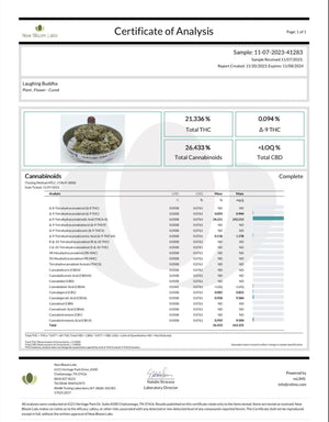 All BackWoodz premium hemp flower products go through 3rd party testing and organically grown without the use of pesticides. Laughing Buddha tests out with a 21.33 THCA% and under .3% Delta-9 THC. BackWoodz hemp flower is U.S Farm Bill compliant under the Agriculture Improvement Act (Sec. 10113).