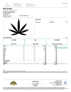 All BackWoodz premium hemp flower products go through 3rd party testing and organically grown without the use of pesticides. Blue Zushi tests with 21.50% THCA and is under .3% Delta-9 THC. BackWoodz hemp flower is U.S Farm Bill compliant under the Agriculture Improvement Act (Sec. 10113).