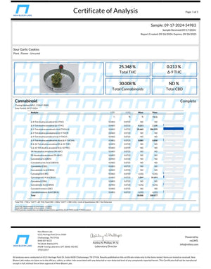 Limited Time! Indoor Sour Garlic Cookies is a beautiful indica hybrid exotic that combines the legendary Girl Scout Cookies cultivar with the ever-popular ChemDawg. This flower tastes of spicy herbs and dank garlic with a mild touch of lemon. S.G.C has a similar aroma that is blended with earthy notes. This 60/40 indica hybrid is best recommended for evening use. Sour Garlic Cookies provides extreme cerebral effects with full body relaxation. THC-A is a natural cannabinoid found in hemp flower. No conversion or infusion method is used in this product.