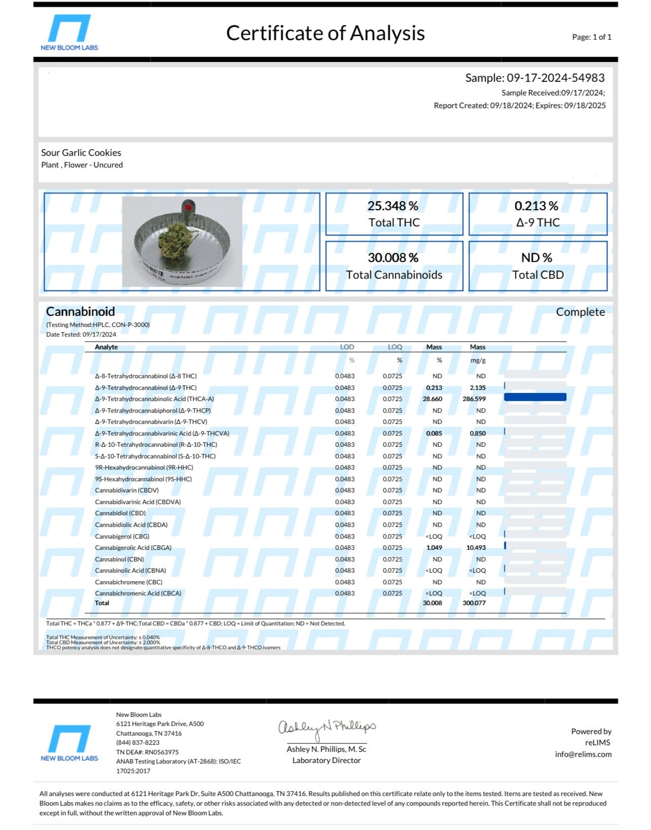 All BackWoodz premium hemp flower products go through 3rd party testing and organically grown without the use of pesticides. Sour Garlic Cookies tests out with a 28.66 THCA% and under .3% Delta-9 THC. BackWoodz hemp flower is U.S Farm Bill compliant under the Agriculture Improvement Act (Sec. 10113).